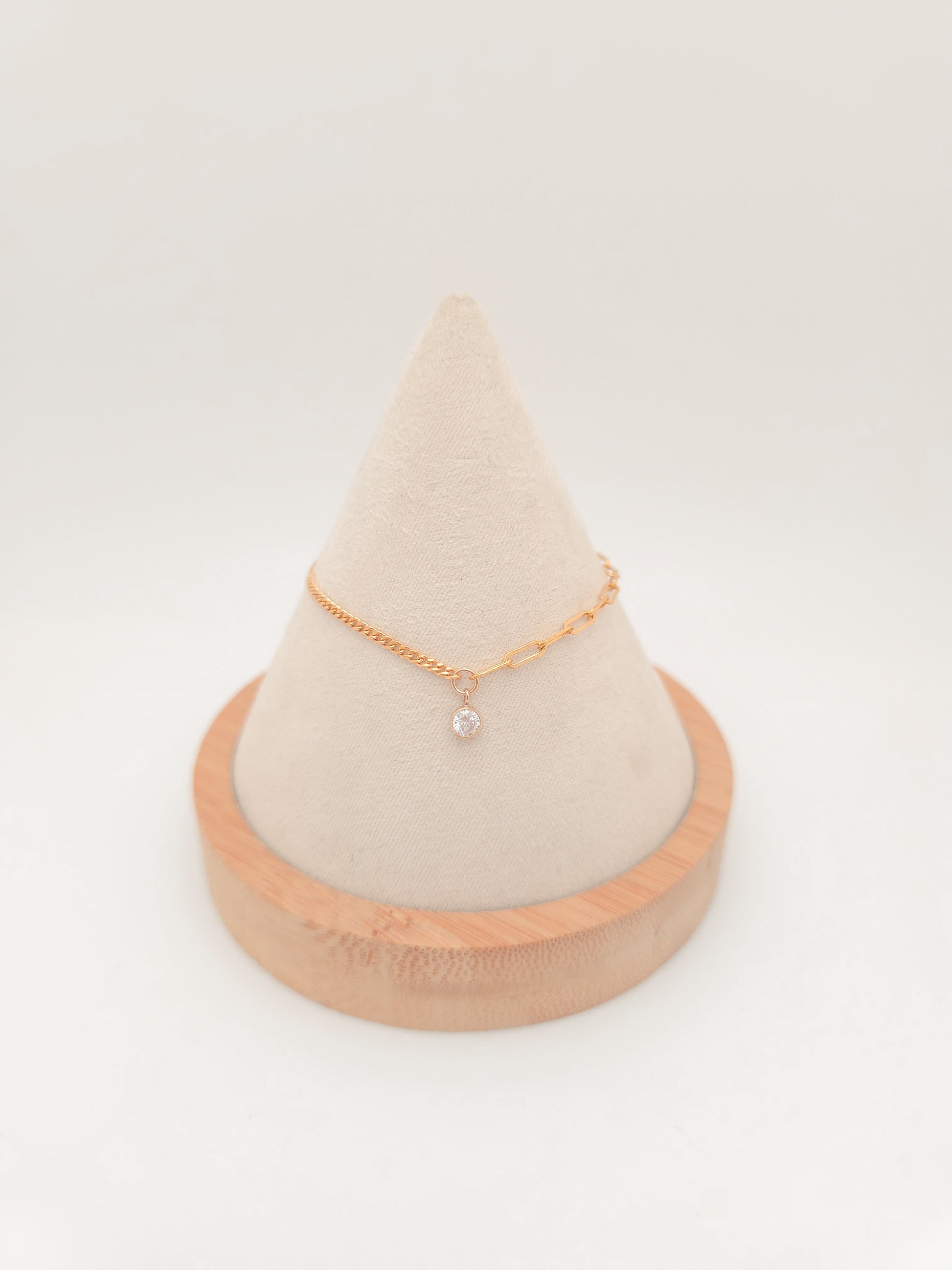 Bracelet is made with a gold-filled chain.