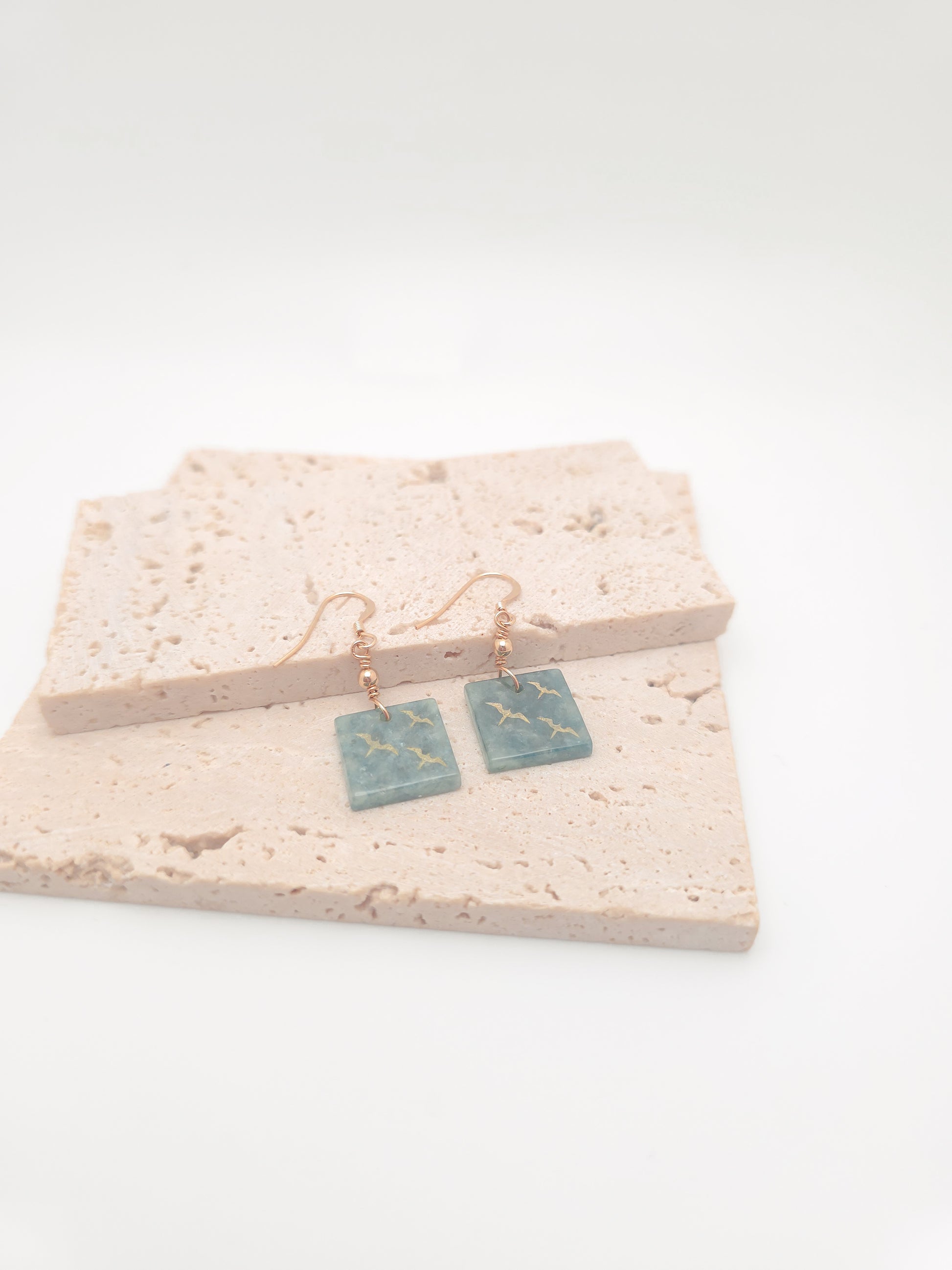 Iwa Bird Jade Square Earrings