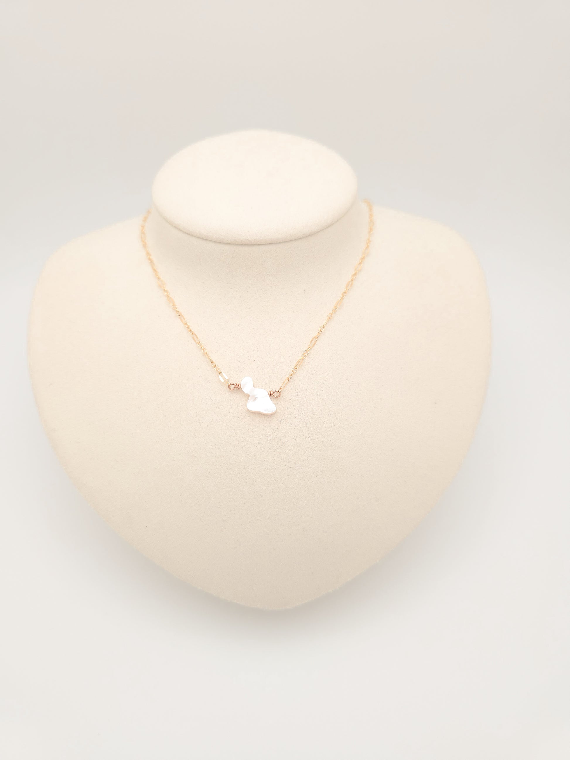 Necklace is made with a gold-filled or sterling silver chain and a Maui shaped Mother of Pearl.