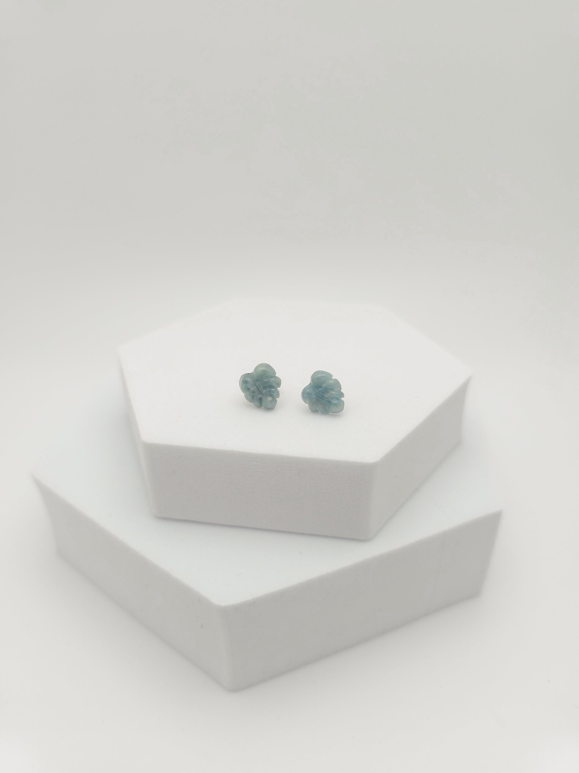 Monstera jade stud earrings.