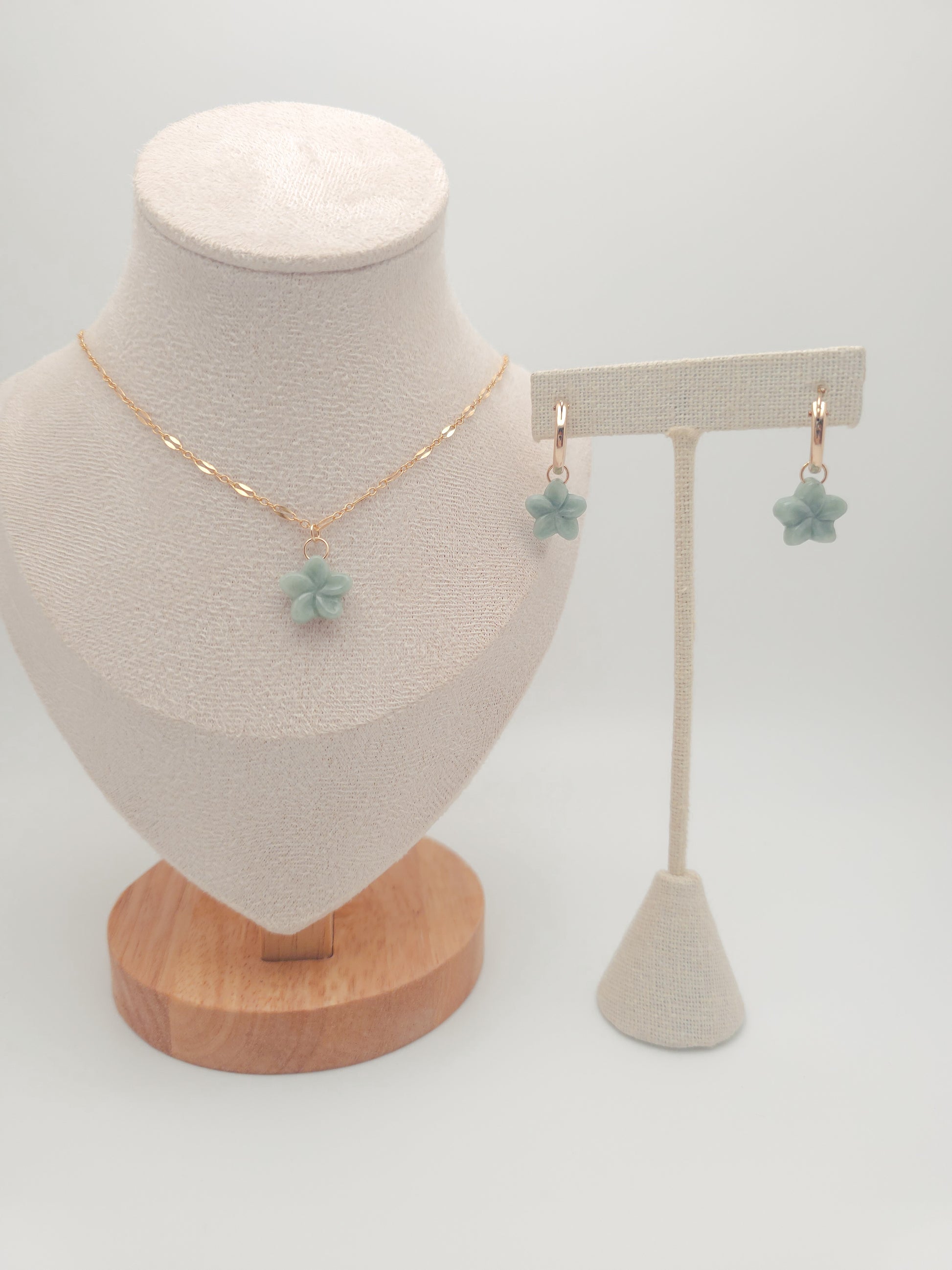 Plumeria Jade hoop earrings.